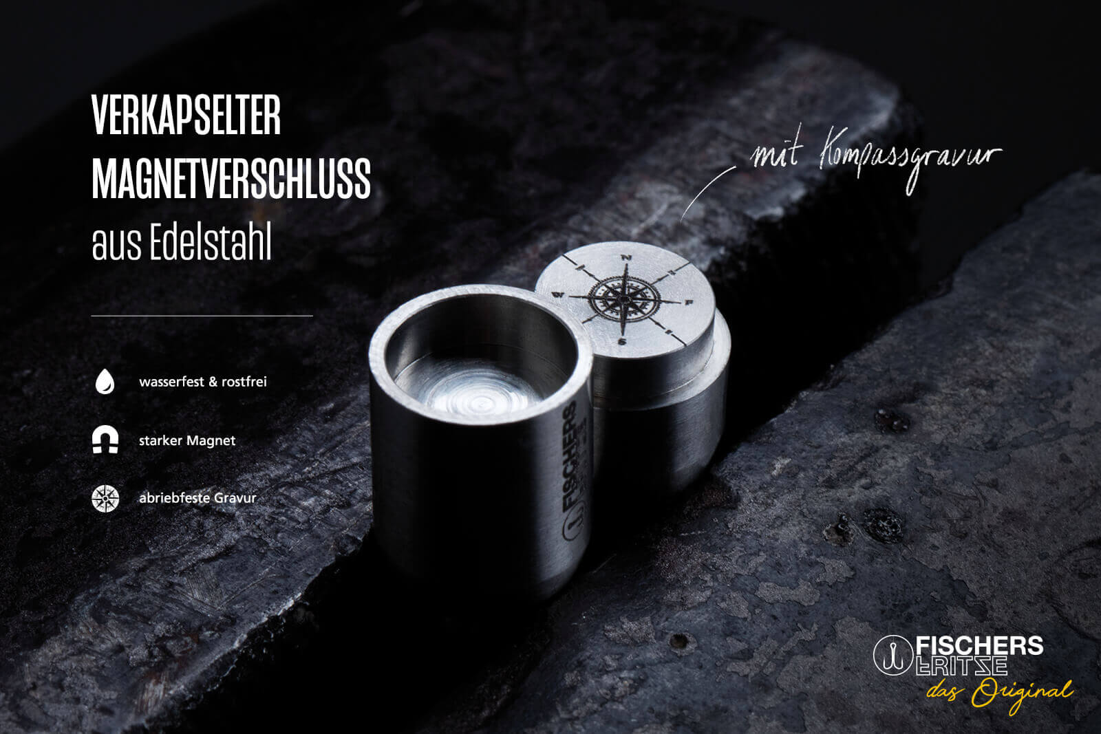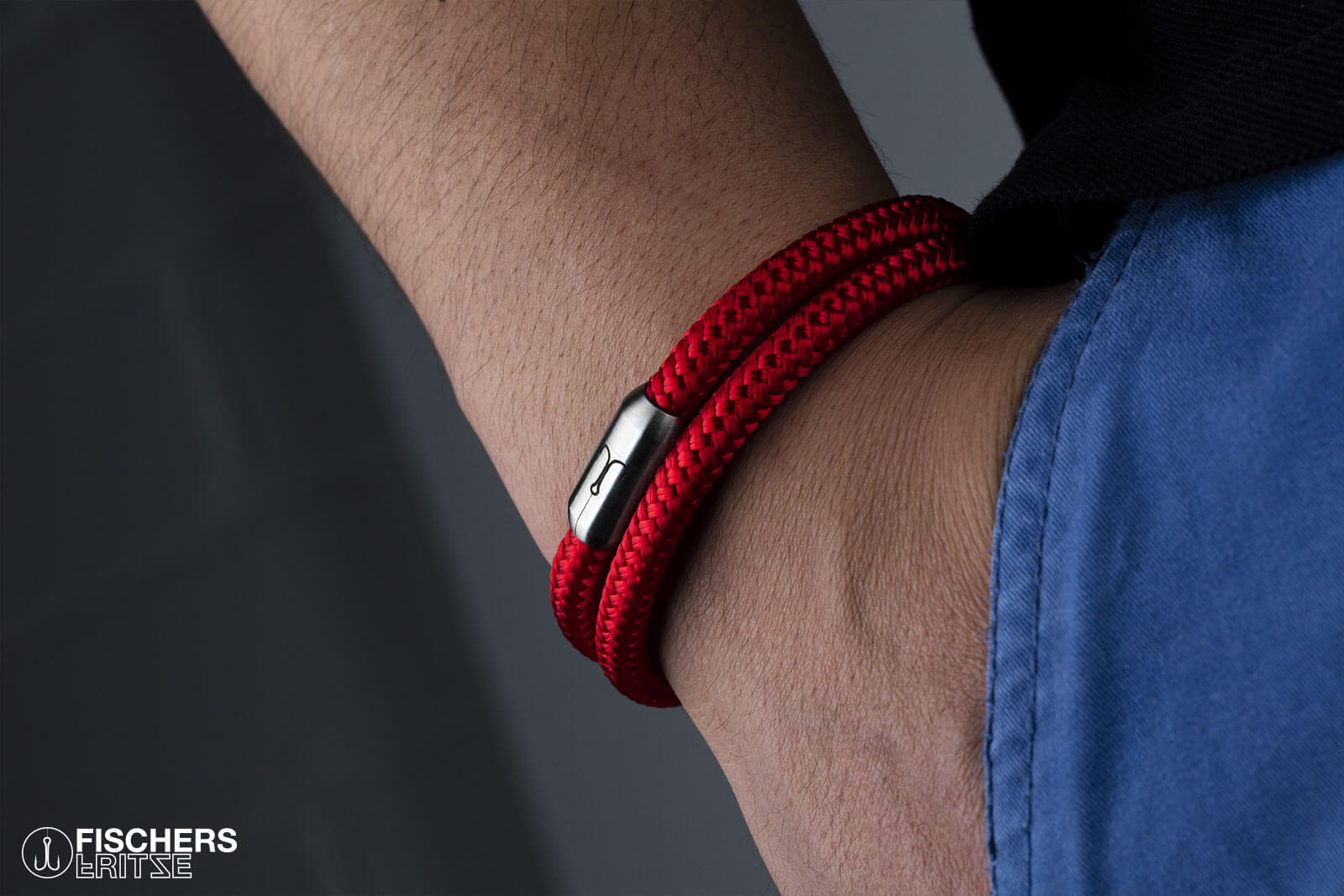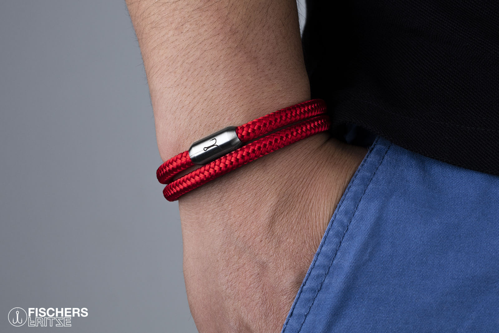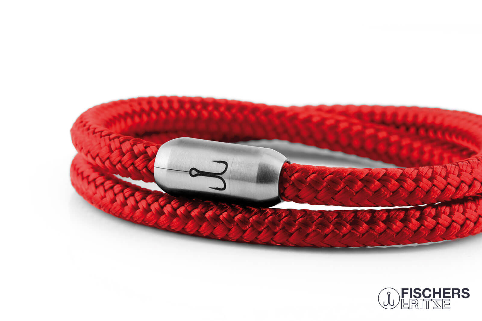Stainless steel meets sailing rope. The Shrimp "LEON" in red. Uncompromising, stable in a maritime look. sailing rope paired with an encapsulated stainless steel magnetic closure - developed & designed by Fischers Fritze®.